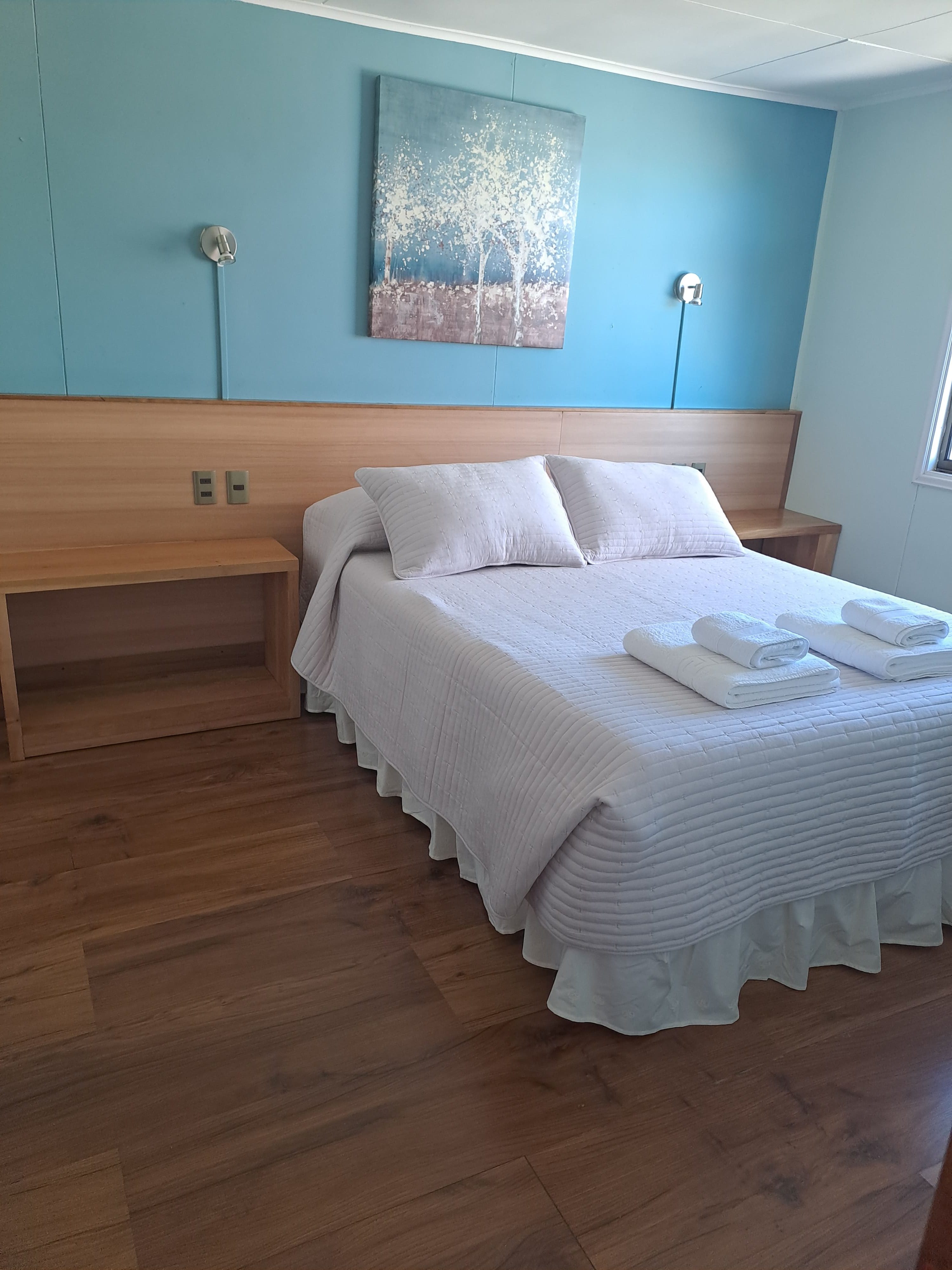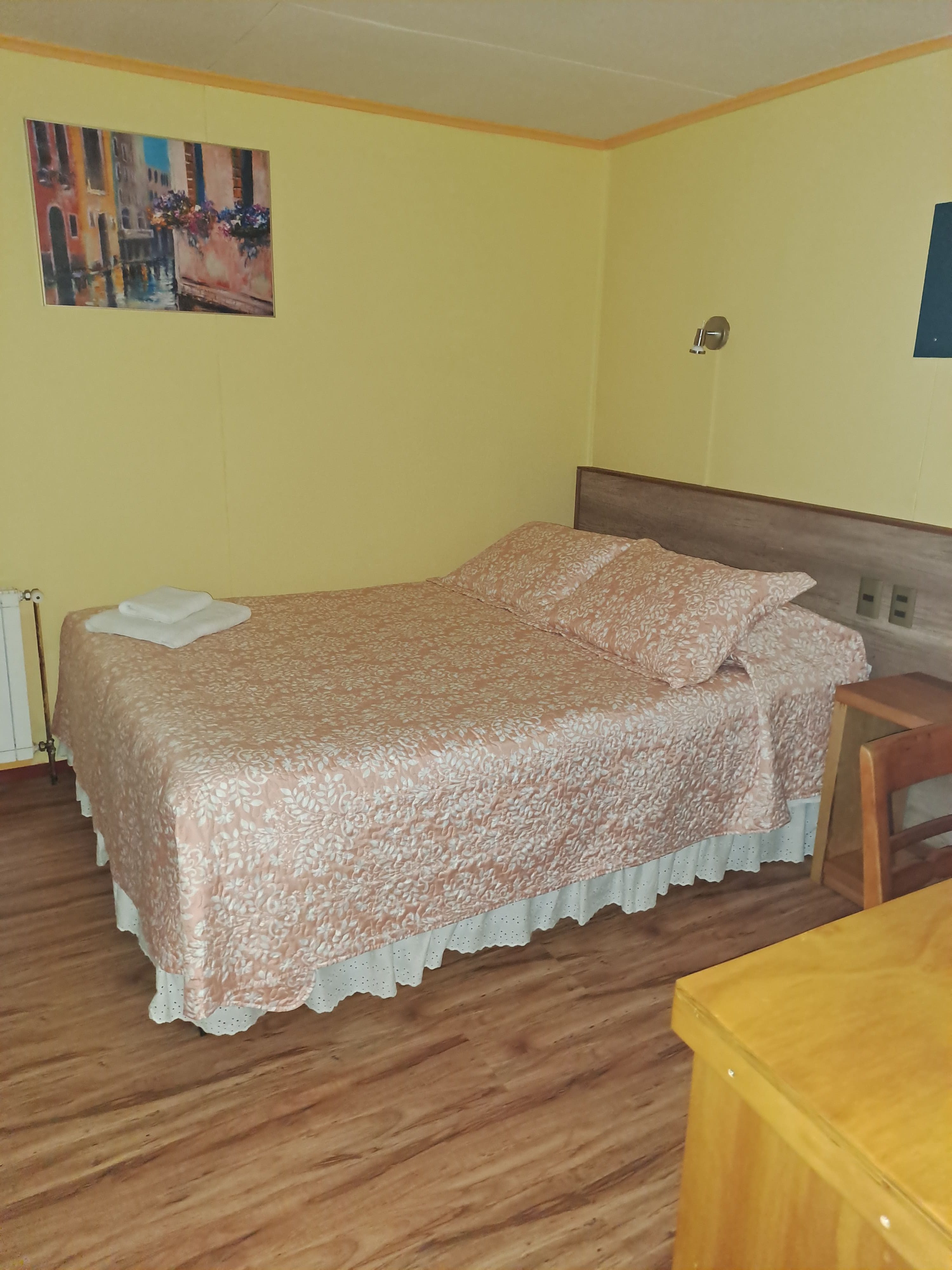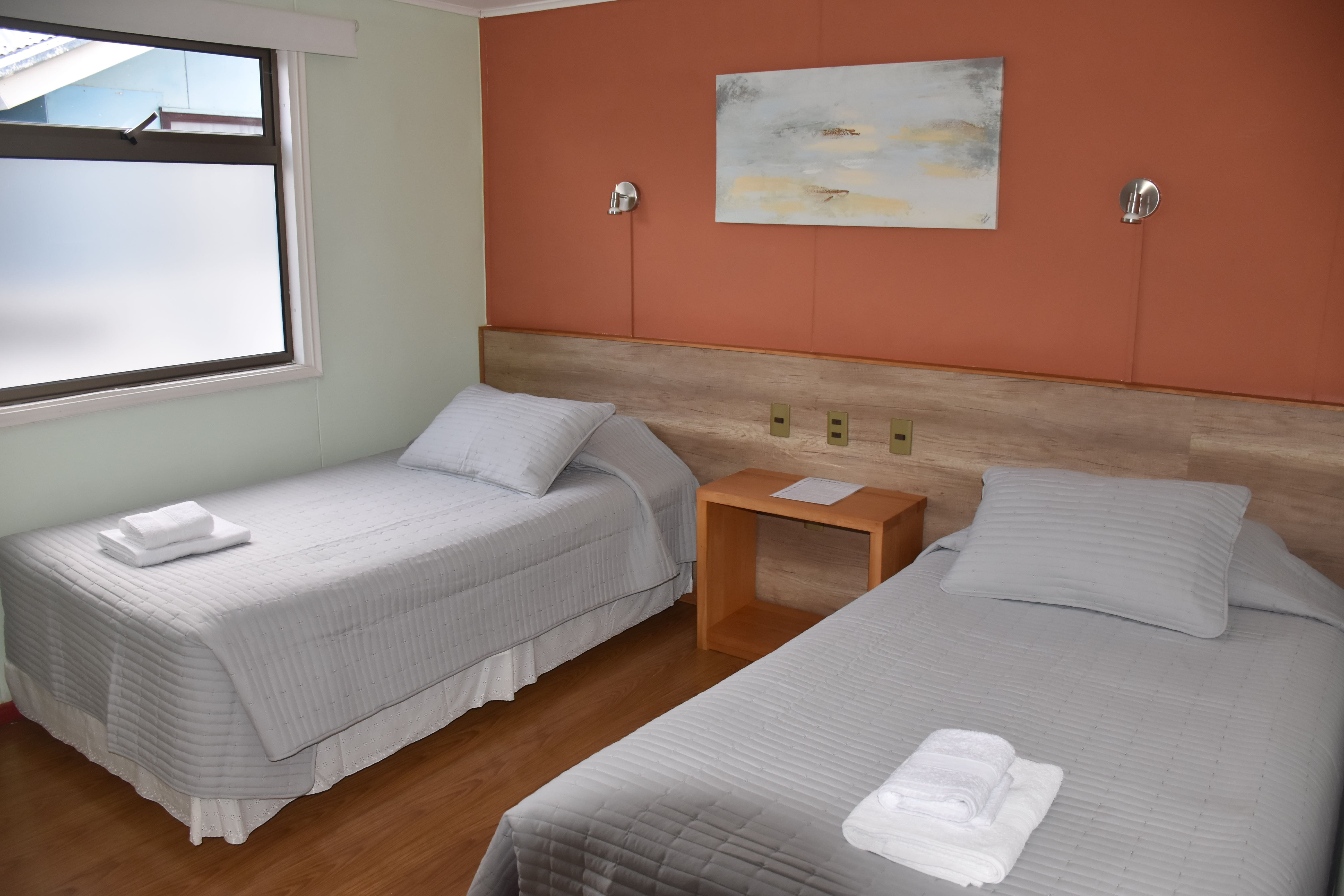 Todas nuestras habitaciones cuentan con baño privado y con sus artículos de aseo costo incluido en su pago. Contamos con un sistema de calefacción central que hace más grato su descanso cuando bajan las temperaturas en la ciudad y, como política de descanso, las habitaciones NO cuentan con aparatos de televisión. Existe uno en el salón compartido en el segundo piso, desde donde se podrá apreciar la imagen de la cordillera Dorotea.